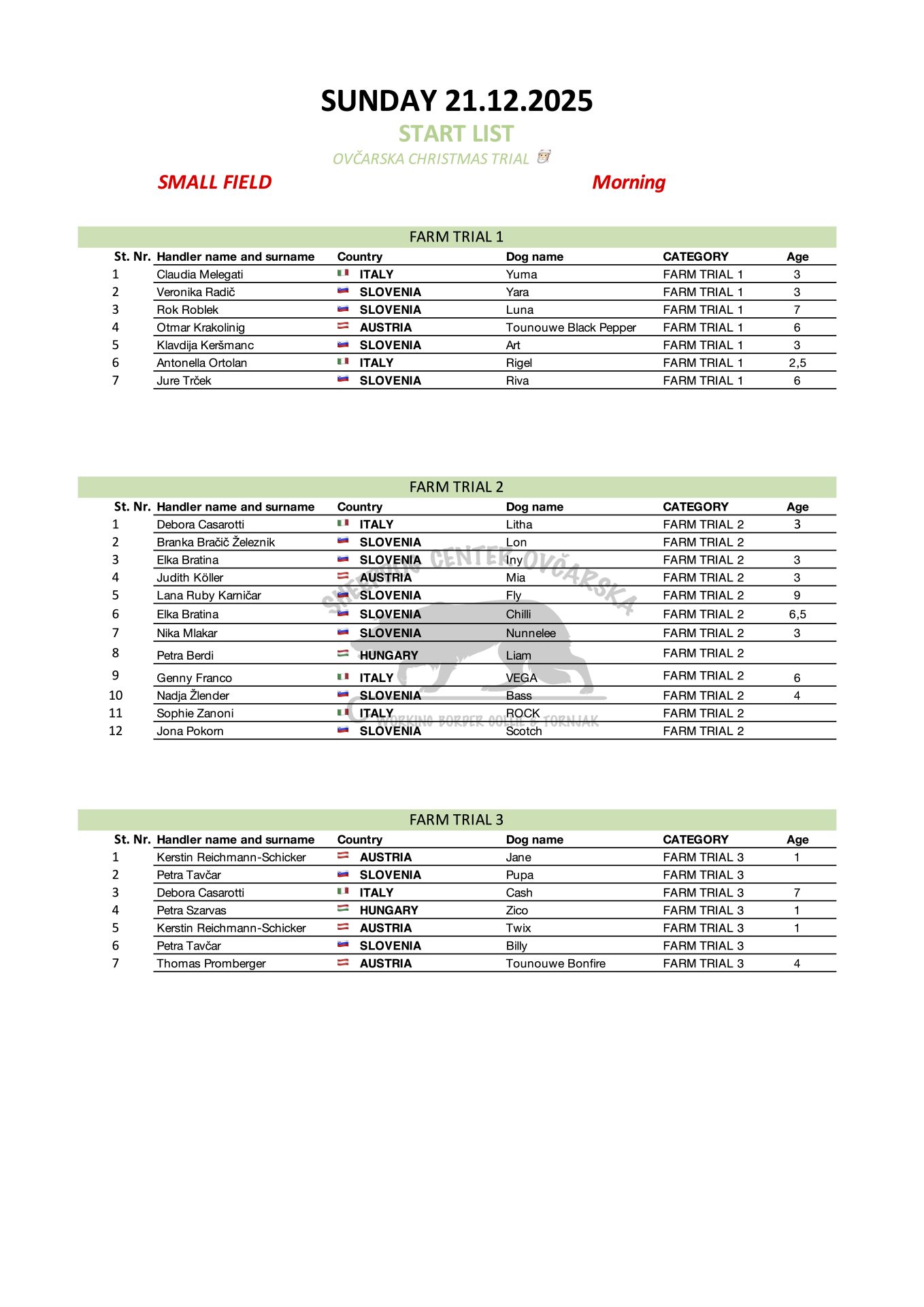 Xmas Trial 2025 - Start List